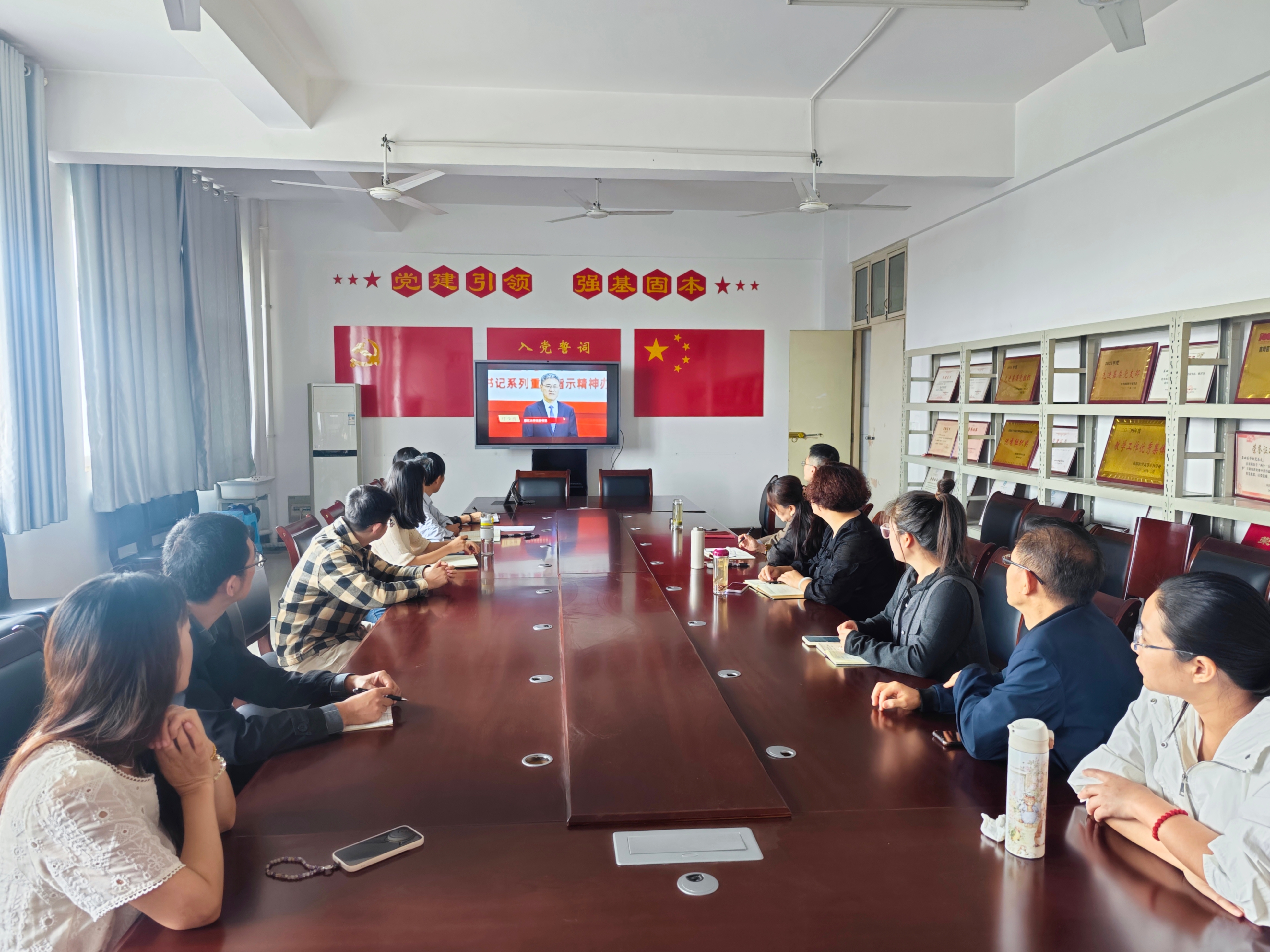 9月19日,基础医学部党总支在实验楼6108会议室集中组织观看2025年“培根铸魂传薪火,强国建设书华章”高校党组织示范微党课。党总支书记陈铁良、主任马瑜红及全体无课党员参加活动。