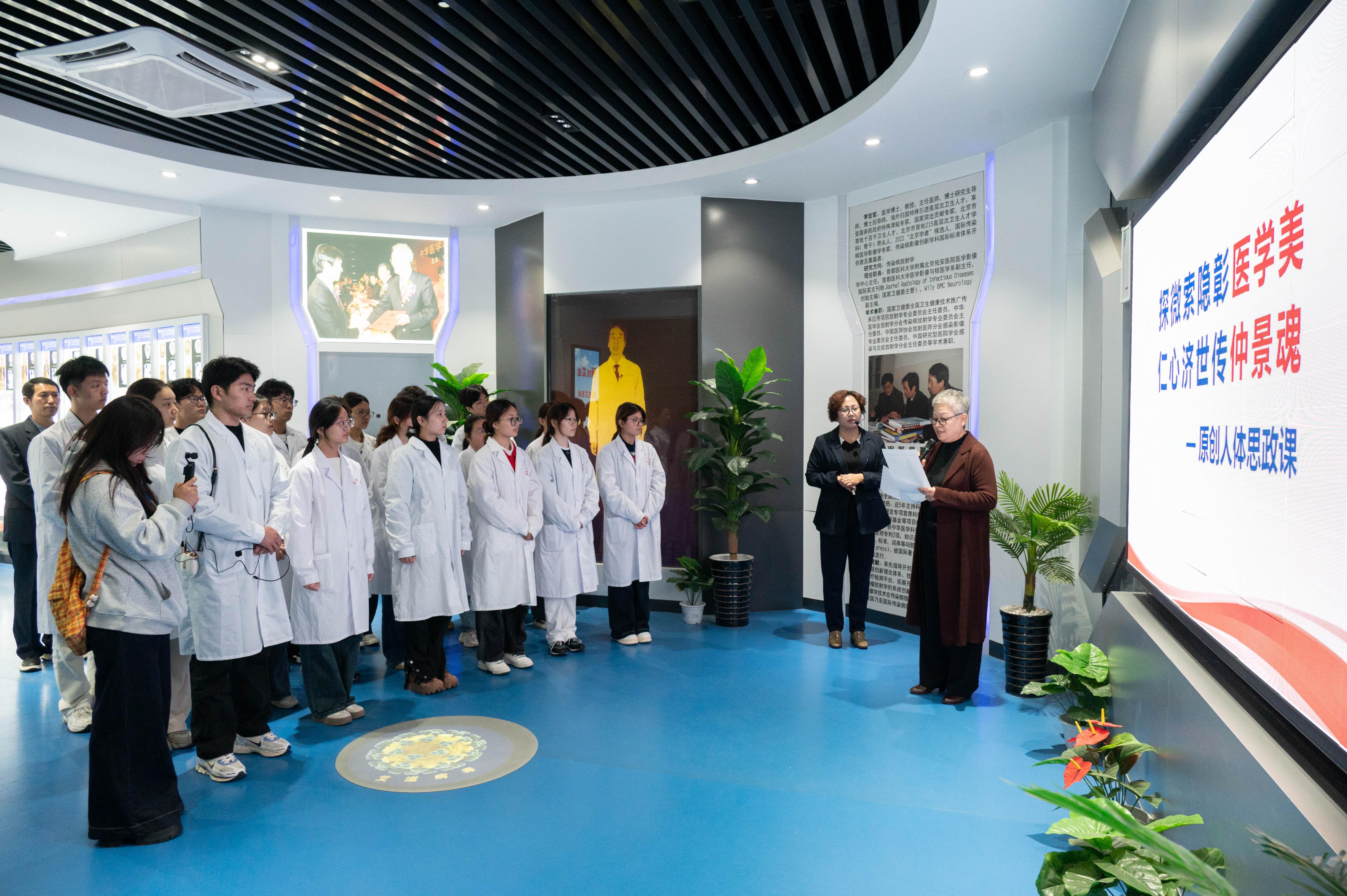 本次课程突破传统模式,以“探微索隐彰医学美 仁心济世传仲景魂”为主题,由基础医学部7名教师联袂授课,以人体生命科学馆实物标本为“活教材”,分篇章、分展区开展教学,让广大师生在情景式沉浸式教学中,感受医学知识与思政教育的有机融合。人体解剖馆教师借助“骨骼主心骨”“关节刚柔并济”等生动比喻,将人体结构与人生道理相结合,引导学生既要有坚定的理想信念作为支撑,又要有通达的处世智慧作为缓冲,从容应对人生风雨,做一个“顶天立地”的人。人体寄生虫馆通过我国寄生虫病防治历程,阐释“人民至上、生命至上”的理念,启迪学生“勤奋能成栋梁才,懒惰终是寄生虫”。病理解剖馆依托标本,分析疾病与遗传、环境的关系,帮助学生树立“防患于未然”的健康观念,培养他们敬畏生命、刻苦钻研、精益求精的精神,立志做人类健康的守护者。传染病数字影像科技馆以李宏军团队攻克艾滋病影像学难题的事迹,培养学生不畏艰难、励志成才的决心,激励广大学子厚植医者仁爱情怀,传承红丝带精神,积极投身志愿服务,为人民的健康事业做出积极贡献。