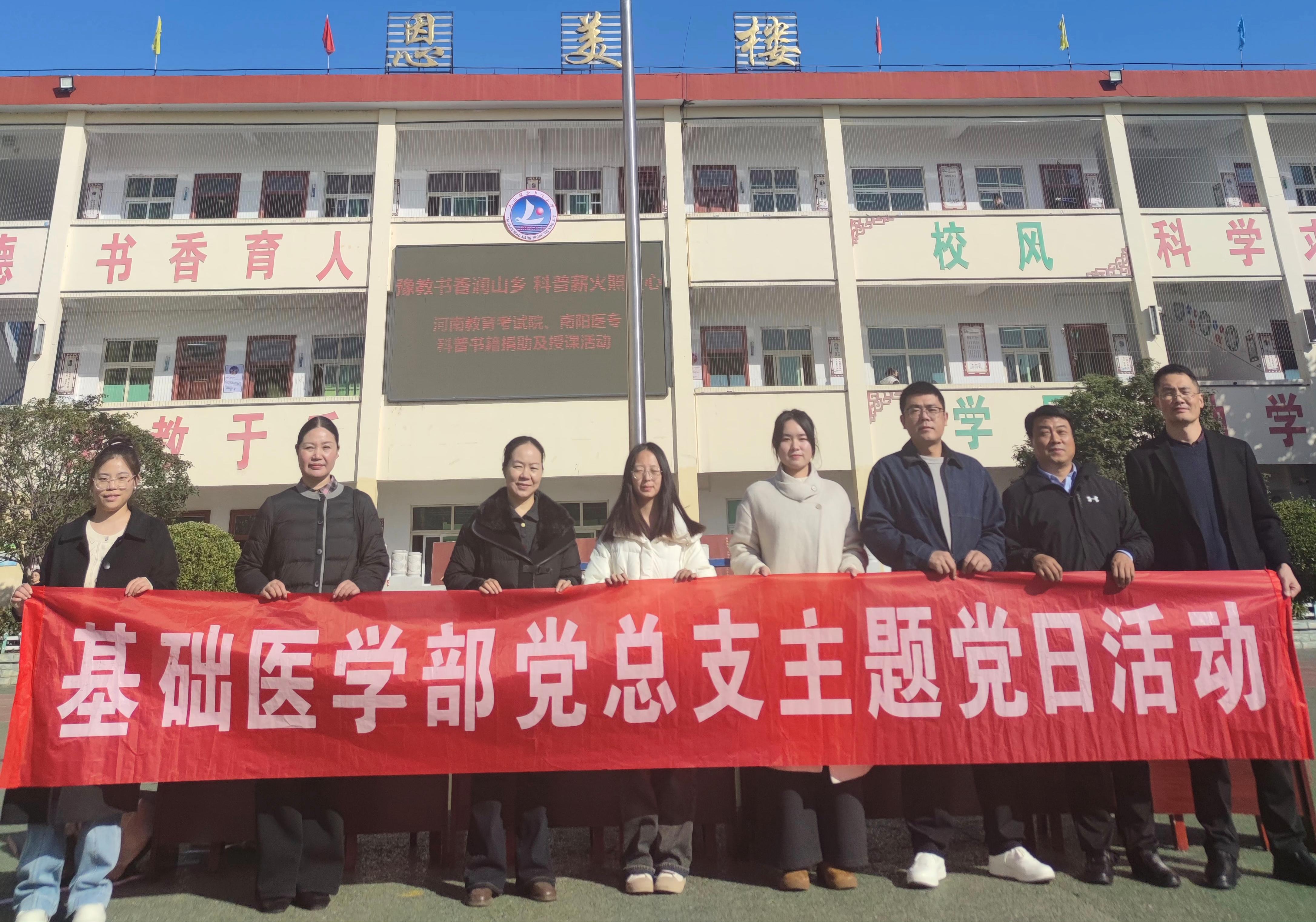 11月21日,校党委委员、副校长杜晓平带领招生办公室、团委、康复医学系、口腔医学系等师生,赴南召县太山庙乡中心小学开展宣传义教活动,以实际行动支持乡村教育,传递健康知识,助力童心成长。基础医学部党总支书记陈铁良、党员教师靳文雨参加活动。