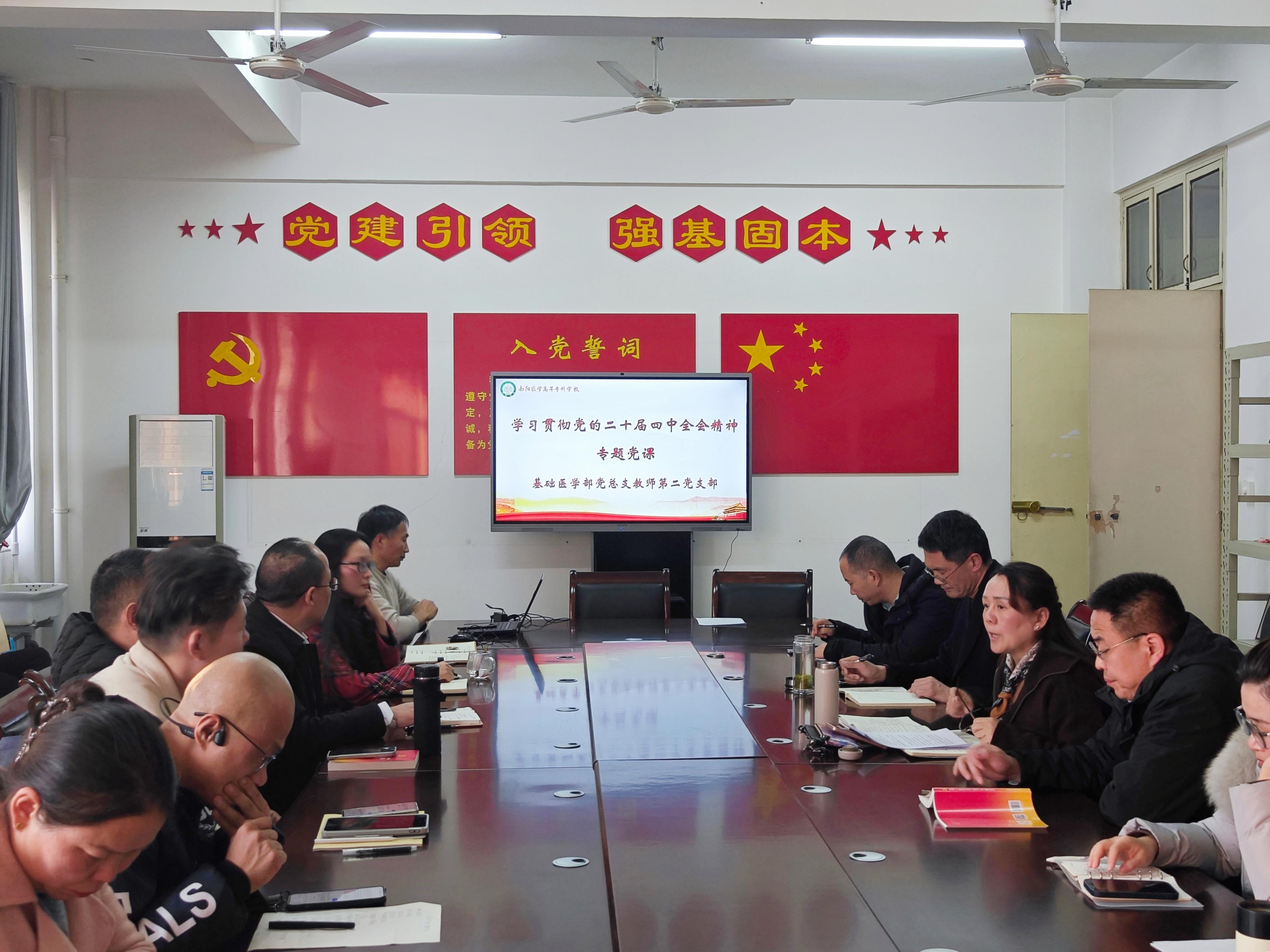 12月10日,基础医学部党总支教师第二党支部在实验楼6108会议室开展学习贯彻党的二十届四中全会精神专题党课。基础医学部全体党员、入党积极分子、民主党派教师、党外副科级干部参加会议。